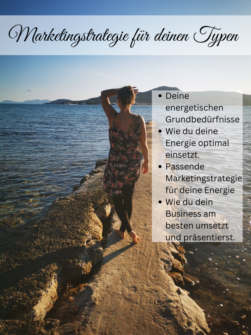Zu deiner ausführlichen Typenanalysen erhälst du deine Marketingstrategie passend zu deinem Typen dazu. Welche Methoden sind energetisch für dich am Besten? Erfahre wie du gezielt deine Energie an Hand deines Typens einsetzen kannst.
