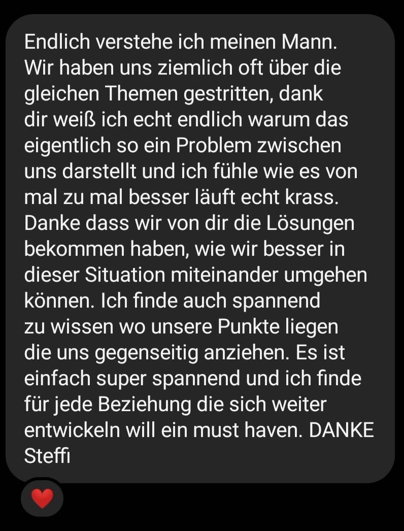 Jetzt geht's ab für alle Paare, egal ob du unglücklich oder glücklich bist, da geht immer noch mehr! Tauche mit mir ein in eine glücklichere und verständnisvollere Beziehung. Lerne deinen Partner besser kennen, lerne dich dabei besser kennen.